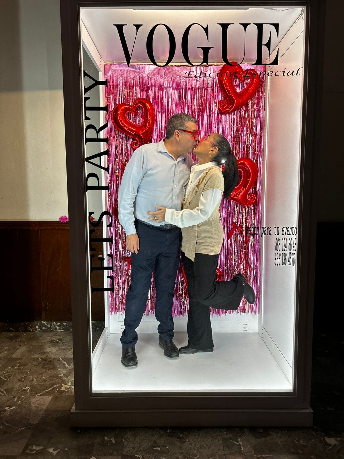 Cabina para fotos con capacidad para un maximo de 4 personas con personalización de diseño para el evento.